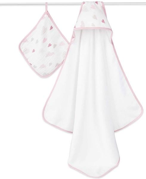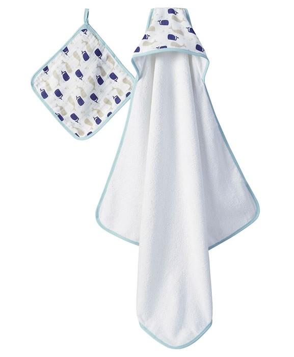 This set includes 1 plush hooded bath towel that keeps little heads warm with a cotton muslin hood and 1 washcloth made from 100% cotton muslin. The large double-layer towel, measuring 32 x 32 inches is extra absorbent and durable. The four-layer washcloth gets softer after each wash, making it extra gentle on your little one's delicate skin. This set is soft and luxurious and creates a perfect bathing experience, both in the tub and out.
