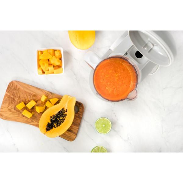 - Spatula, mixing lid/smoothie filter and recipe/menu booklet included