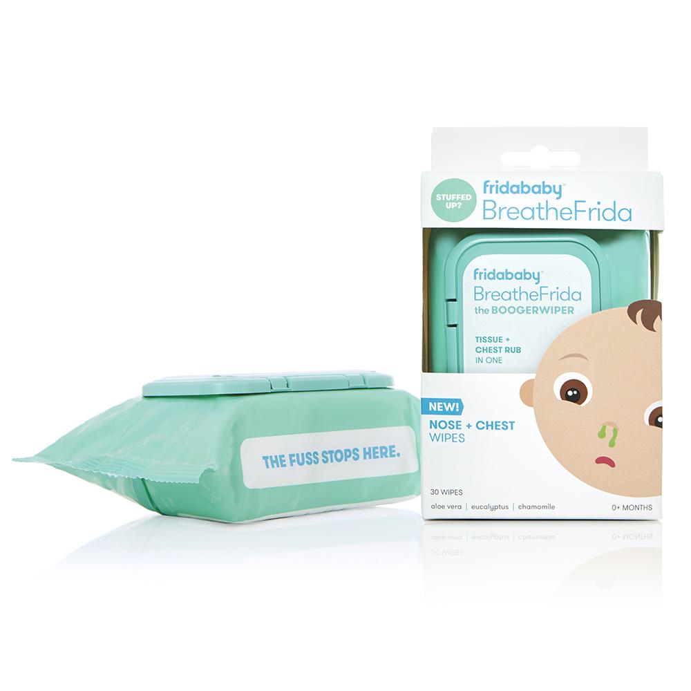 The BoogerWiper soothes snore sniffers at home and on-the-go with all the benefits of a chest balm in a fuss-free wipe form. Chamomile, aloe + vitamin B provide cooling relief to tender noses, and all-natural menthol + eucalyptus leave baby feeling refreshed from chest to toes.