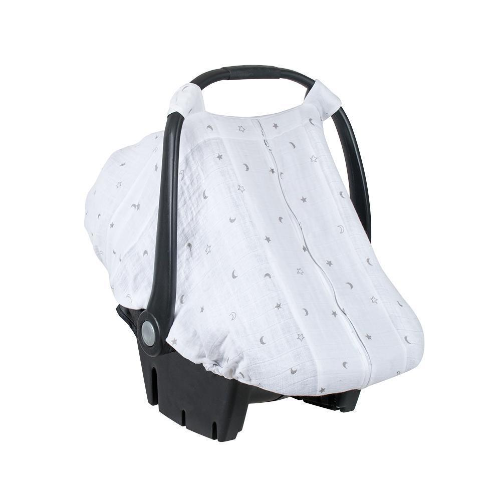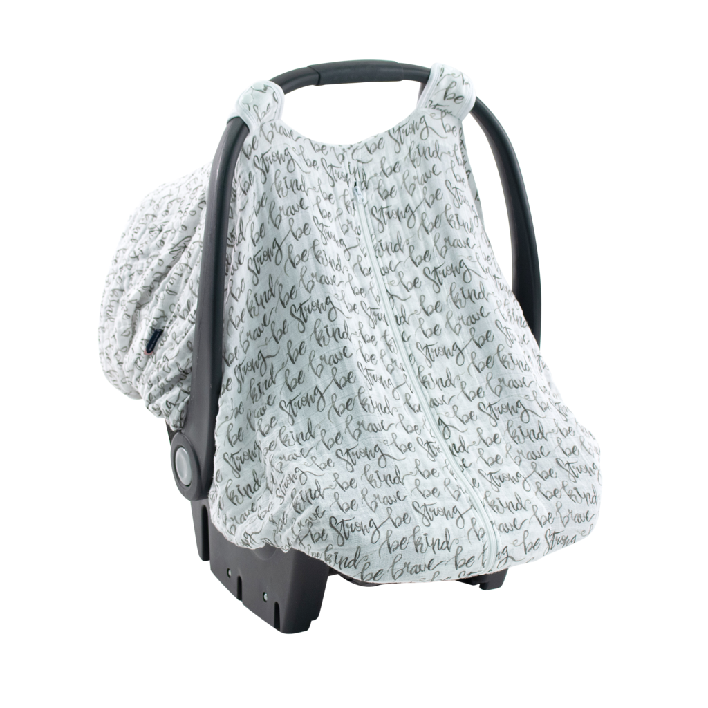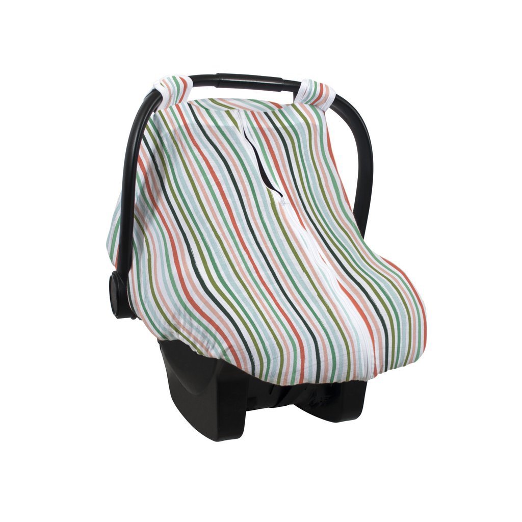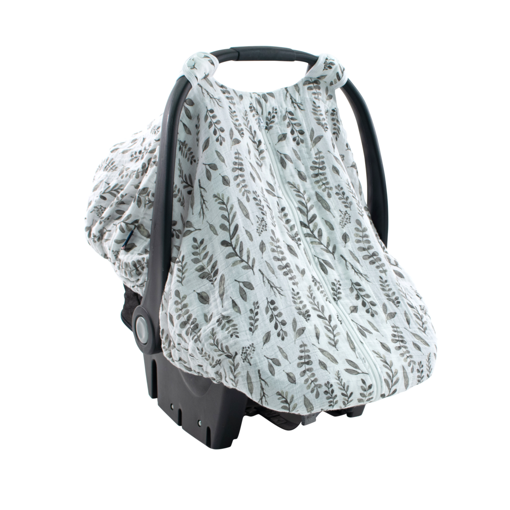 Keep your baby cool and covered with Bebe au Lait's Muslin Car Seat Cover. The breathable, open-weave cotton is designed to create a light and airy layer between baby and the outside world. The zippered opening lets little ones peek out when awake or stay covered when asleep: a must-have product for parents on-the-go. Simple to install with easy-snap straps and an elasticized bottom, it will fit most car seats and is machine washable. The Car Seat Cover matches our Snuggle Blankets and Bedtime Sleepers in this pattern, making a perfect travel set!