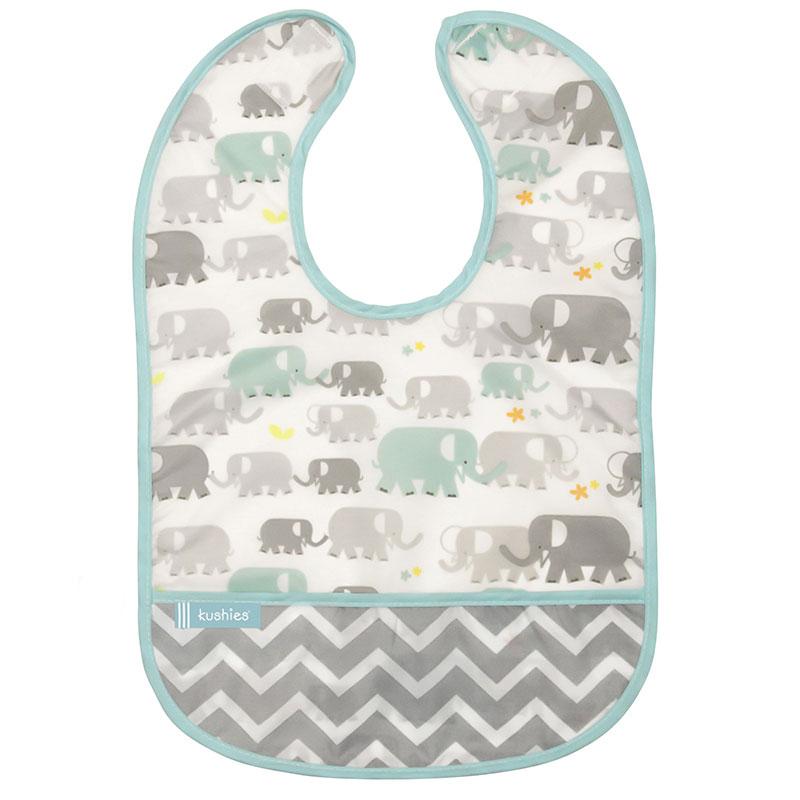 Kushies Cleanbibs are 'must haves' for every parent busy feeding their baby. These bibs are made of a waterproof fabric so lightweight, your baby won't even know she/he's wearing a bib. The Kushies Cleanbib features an easy on/off hook loop fastening system and a catch all pocket. It wipes down easily so you can reuse it at the next meal. Lead, Phthalate PVC & BPA Free. Rest assured with Kushies bibs, they're ethically made in Canada!