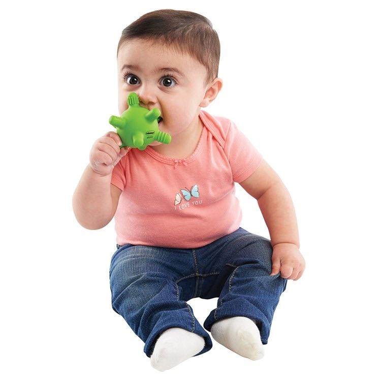 Gumball has eight nubs for nibbling, each with a different texture, for each teething phase (infancy - 33 months). Little ones love to twist it, roll it and toss it.