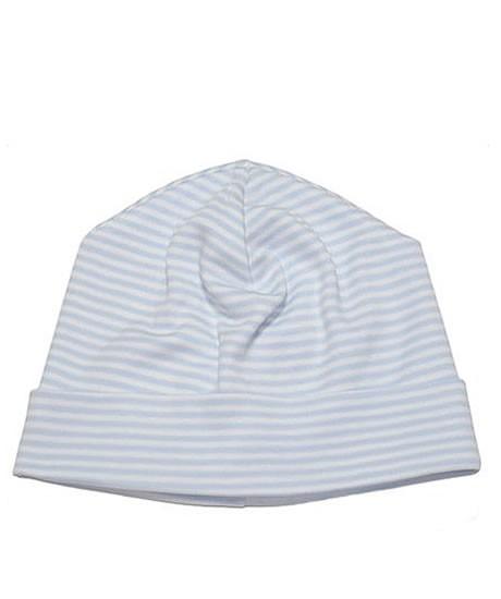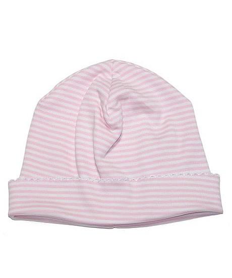 Kissy Kissy Simple Stripes Hat from their layette line is made from irresistibly soft Peruvian Pima Cotton. The cozy baby hat in Pink or Blue has narrow stripes with a cuffed rim. This adorable little beanie comes in Newborn (NB) or Preemie (PR) sizes.