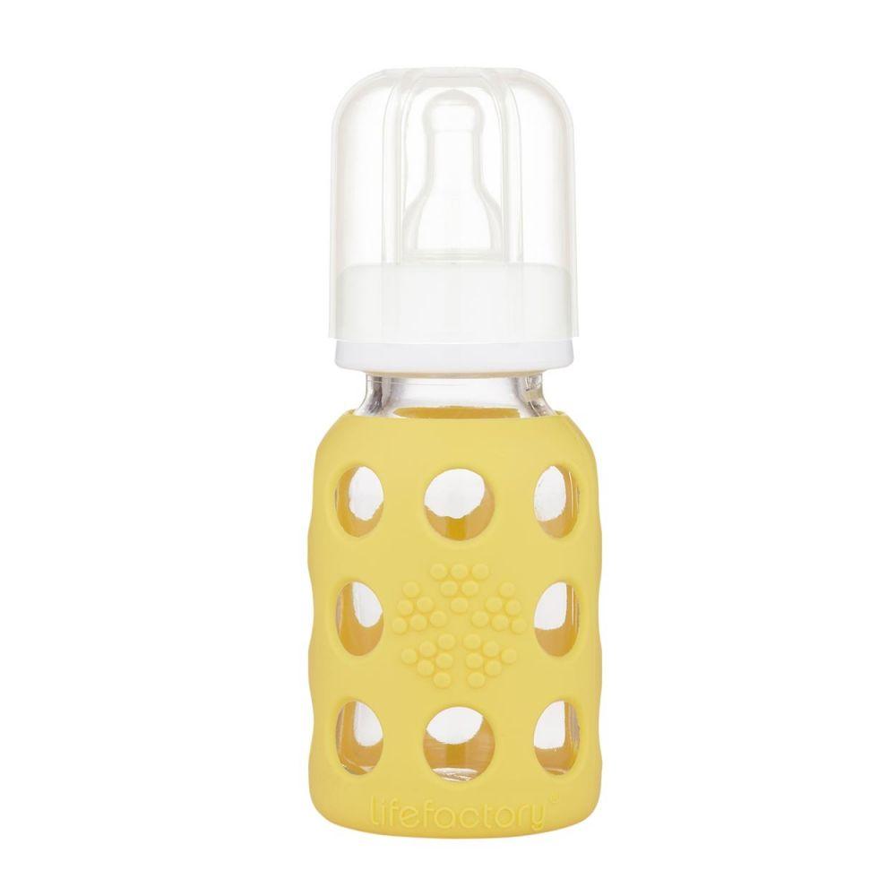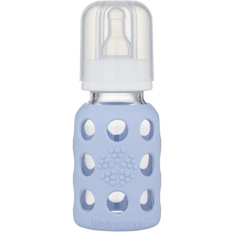 Life Factory Glass Baby Bottles are safe for baby and built to last. The bottle is made from thermal shock-resistant borosilicate glass, allowing bottles to safely transition from freezer to boiling water. The silicone sleeve and other parts are made with BPA-free, phthalate-free and FDA approved materials. Includes a glass bottle, silicone sleeve, cap, ring, stopper and a Stage 1 (0-3 months) silicone nipple.