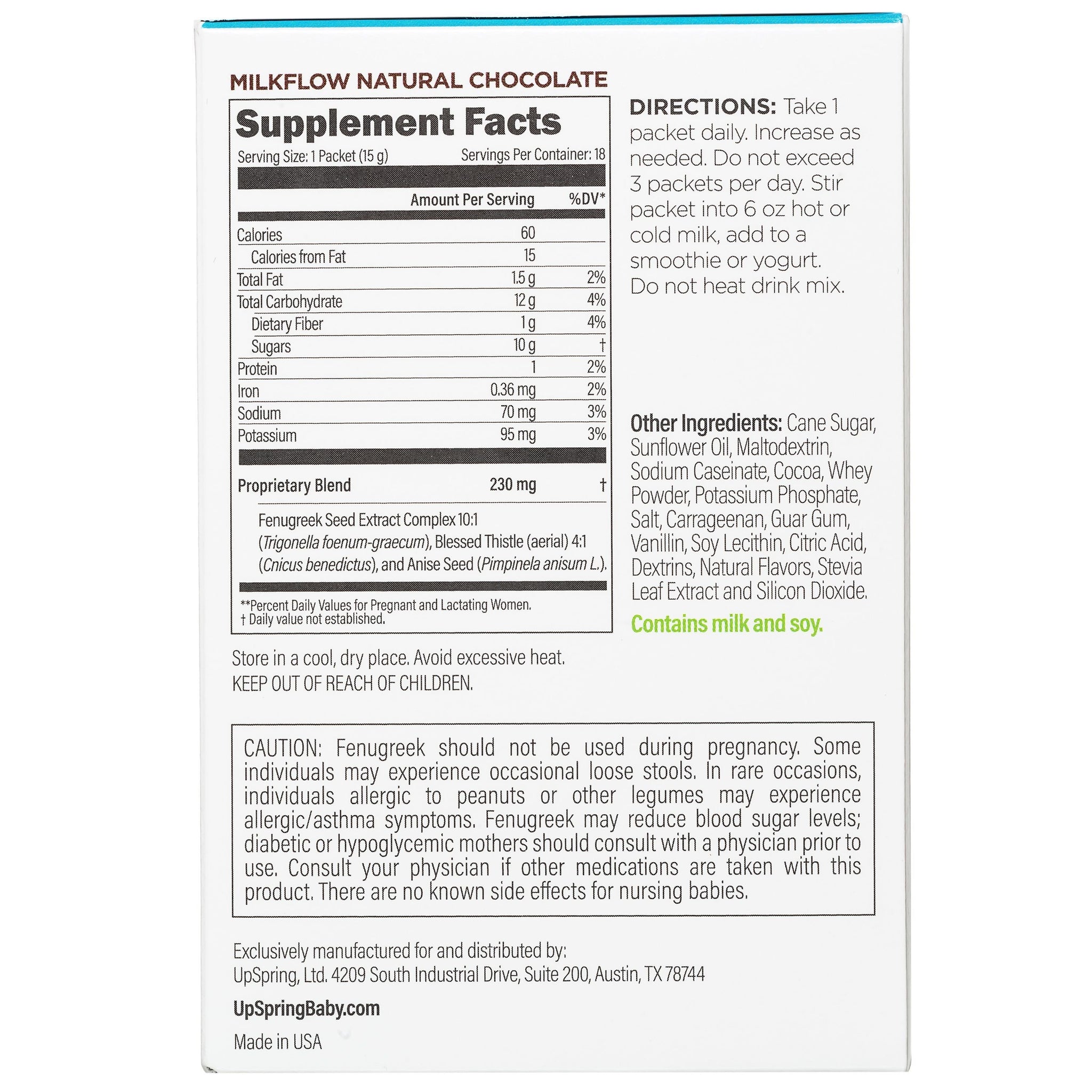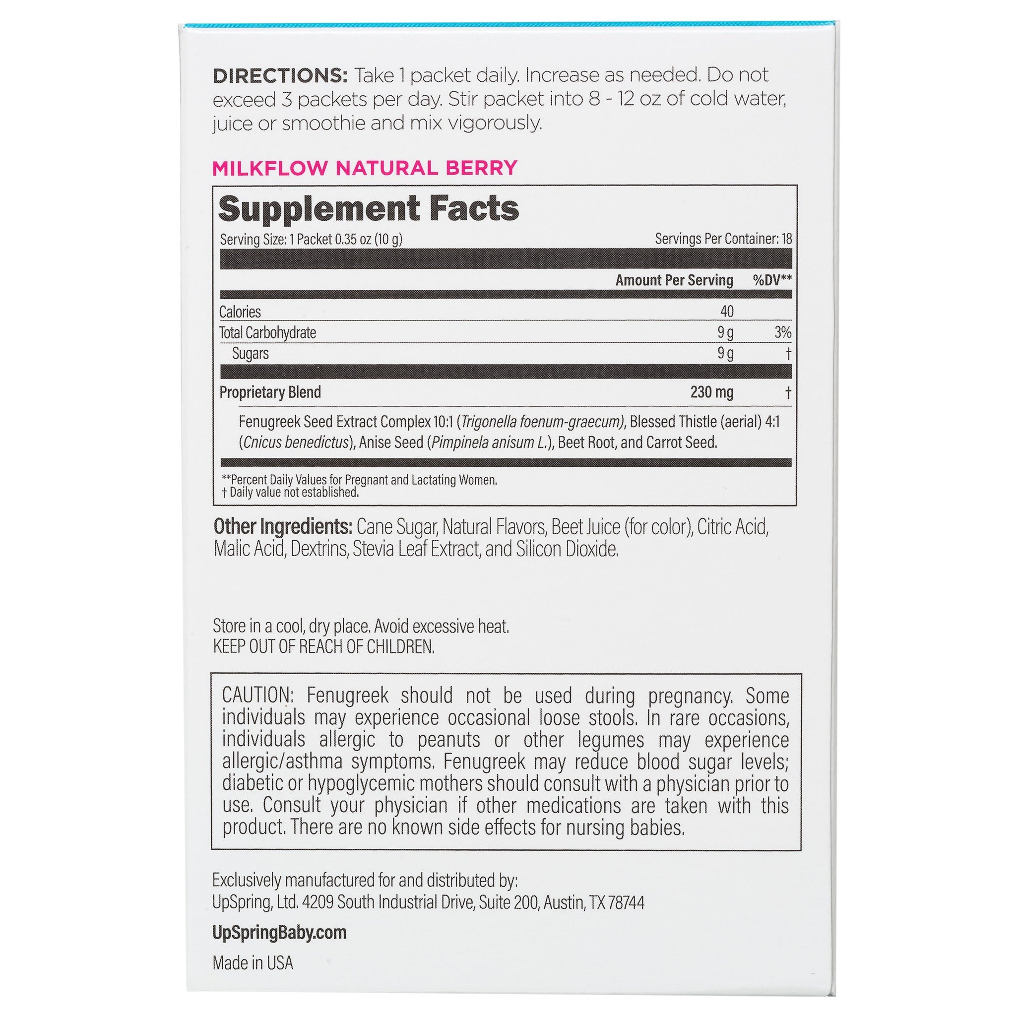 UpSpring Milkflow™ Fenugreek & Blessed Thistle Drink Mix is a proprietary blend that includes blessed thistle and anise. If you're trying to establish a sufficient breast milk supply for your baby, or want to increase pumping yields this great tasting drink mix will help. Easy to use, most Moms see an increase with 1 to 2 packs a day after about 3 days use. *