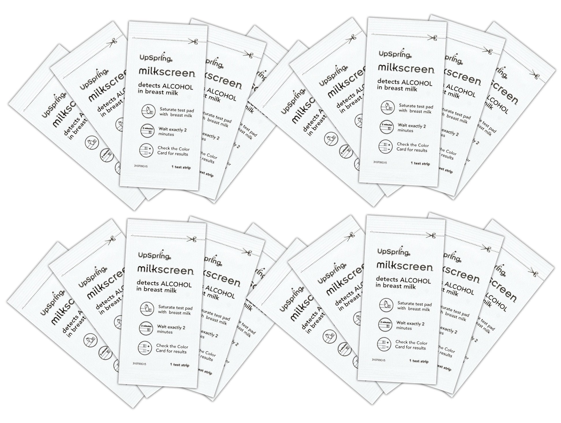 UpSpring Milkscreen Test for Alcohol in Breast Milk (20 test strips), the first and only test of its kind. The simple test is a fast, highly sensitive, non-invasive method to positively identify the presence of alcohol in breast milk. A simple 2 minute test will tell you if there is any alcohol detected in your milk. Simply discharge a small amount of breast milk directly onto the reactive pad of one strip and wait two minutes for your result. See Additional Info Tab for more.