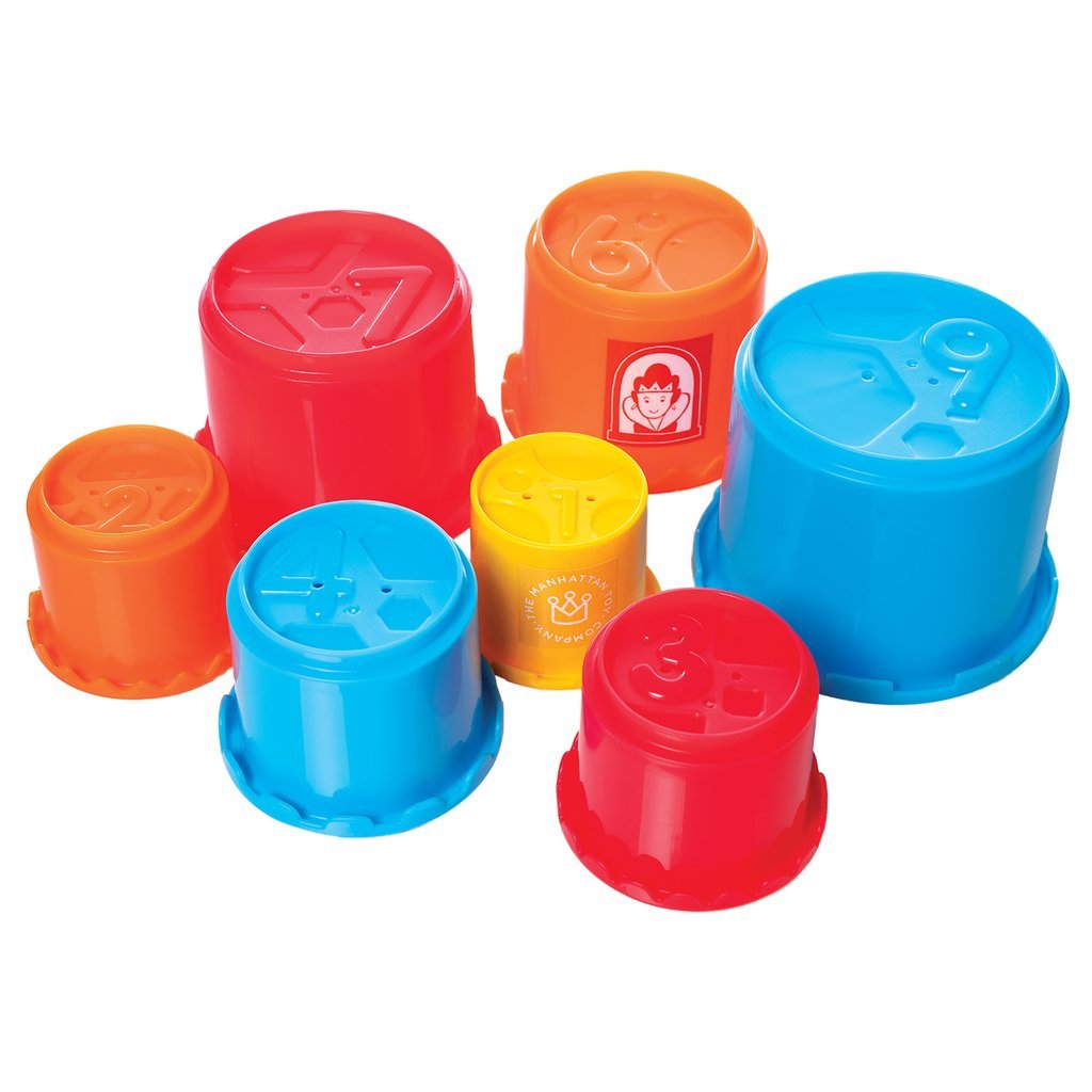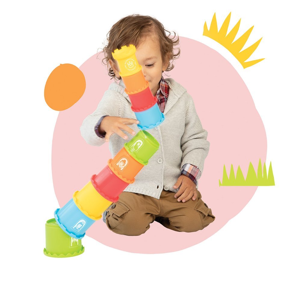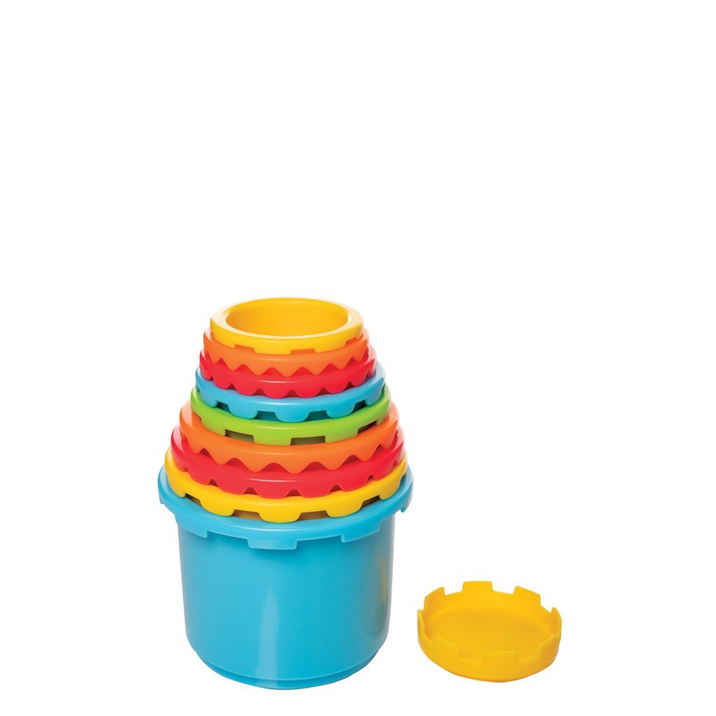 Stack and sort cups by color, size, or number. Stack + Smash includes 10 stacking cups and one topper. You might call it stacking and smashing, but we'd call it motor skill development and early spatial reasoning.