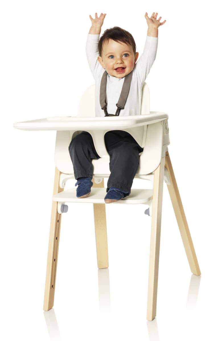 Part of Stokke Steps modular seating system, this ergonomic high chair set keeps your little one at the table with you during mealtimes. The tool-free footrest easily adjusts to give your child maximum support—it brings the 'floor' up to their feet, so they can shift positions just like you.
