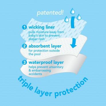 i play.® is the original reusable Swim Diaper manufacturer and has a patented three-layer design. The wicking liner helps prevent diaper rash, the inner absorbent layer helps protect against messes outside the pool, and the waterproof outer layer works with the snug-fitting waist and legs to provide secure protection from unsanitary and embarrassing accidents in the pool.